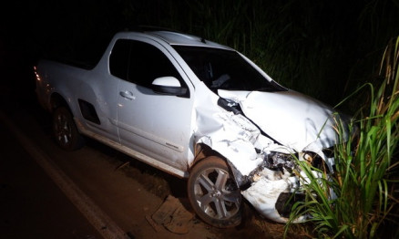 Pioneira, uma caminhonete Montana bateu na traseira de um Gol preto, no sentido
