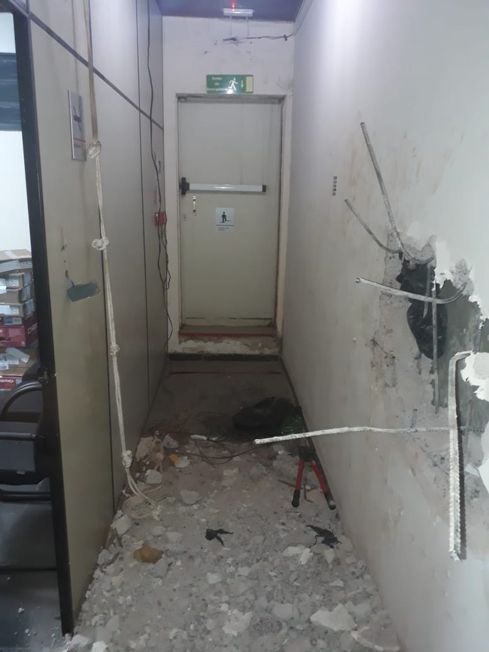flagrou os assaltantes. A lateral do cofre da agência estava arrombada.